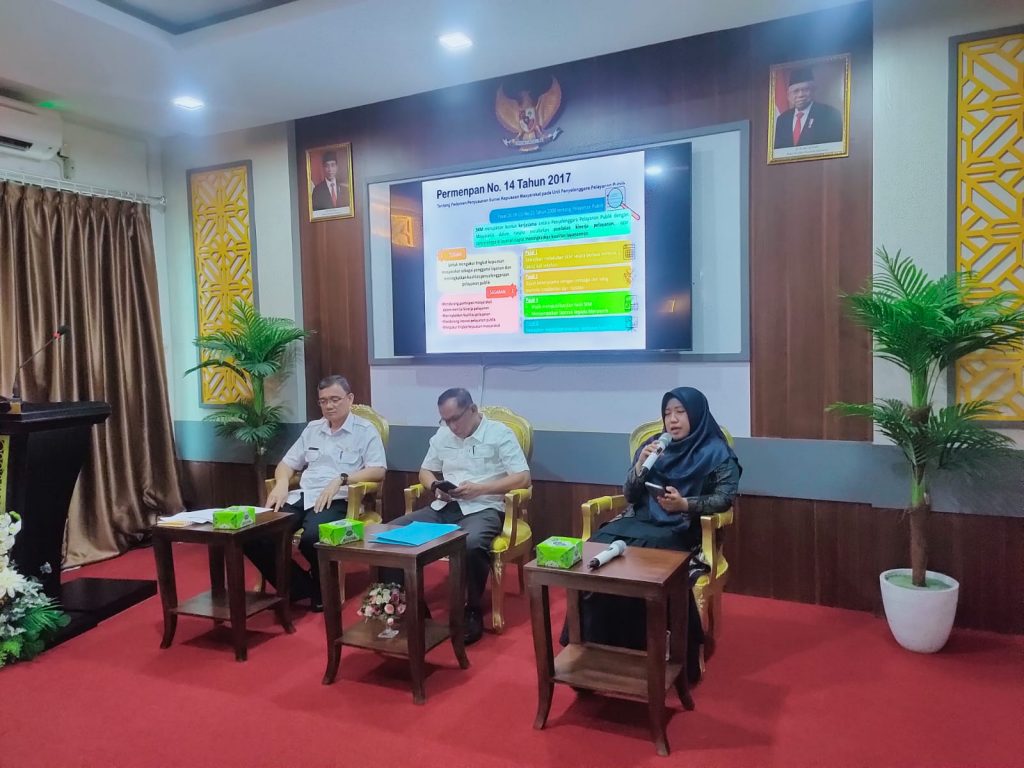 Tenaga Ahli, Bunga Chintia Utami, juga menyampaikan berdasarkan Peraturan Menteri Aparatur Negara dan Reformasi Birokrasi Nomor 14 Tahun 2017 tentang Pedoman Penyusunan Survei Kepuasan Masyarakat Unit Penyelenggara Pelayanan Publik, SKM adalah bentuk evaluasi pelayanan publik PD terhadap masyarakat. PD yang melaksanakan pelayanan publik wajib melaksanakan SKM. DIakhir acara, Kepala Bagian Organisasi, M. Fadli Mukhtar, S.Pi, M.Sc menyampaikan Rekomendasi Hasil Reviu Laporan Pelaksanaan Survei Kepuasan Masyarakat dan Forum Konsultasi Publik Tahun 2022 dari Kementerian Pendayagunaan Aparatur Negara dan Reformasi Birokrasi. Hasil IKM yg diperoleh Kabupaten Kampar adalah 86,98 (B) dan beberapa poin yang perlu dibenahi untuk meningkatkan nilai IKM Tahun 2023.