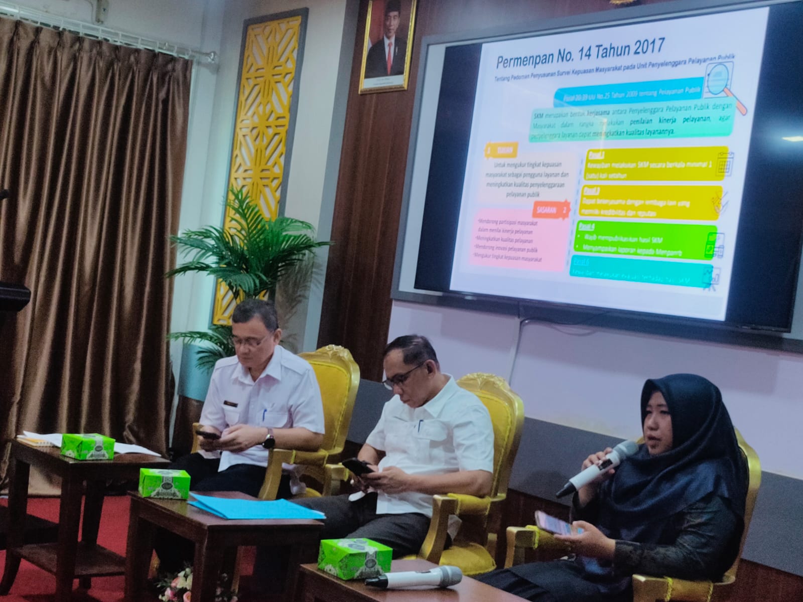 Dalam rangka finalisasi Laporan Survei Kepuasan Masyarakat Perangkat Daerah Kabupaten Kampar Tahun 2023, Bagian Organisasi didampingi Tenaga Ahli Universitas Riau, Bunga Chintia Utami, S.IP, ME mengundang seluruh PD KAbupaten Kampar untuk mengevaluasi hasil Laporan SKM yang telah disusun oleh PD.