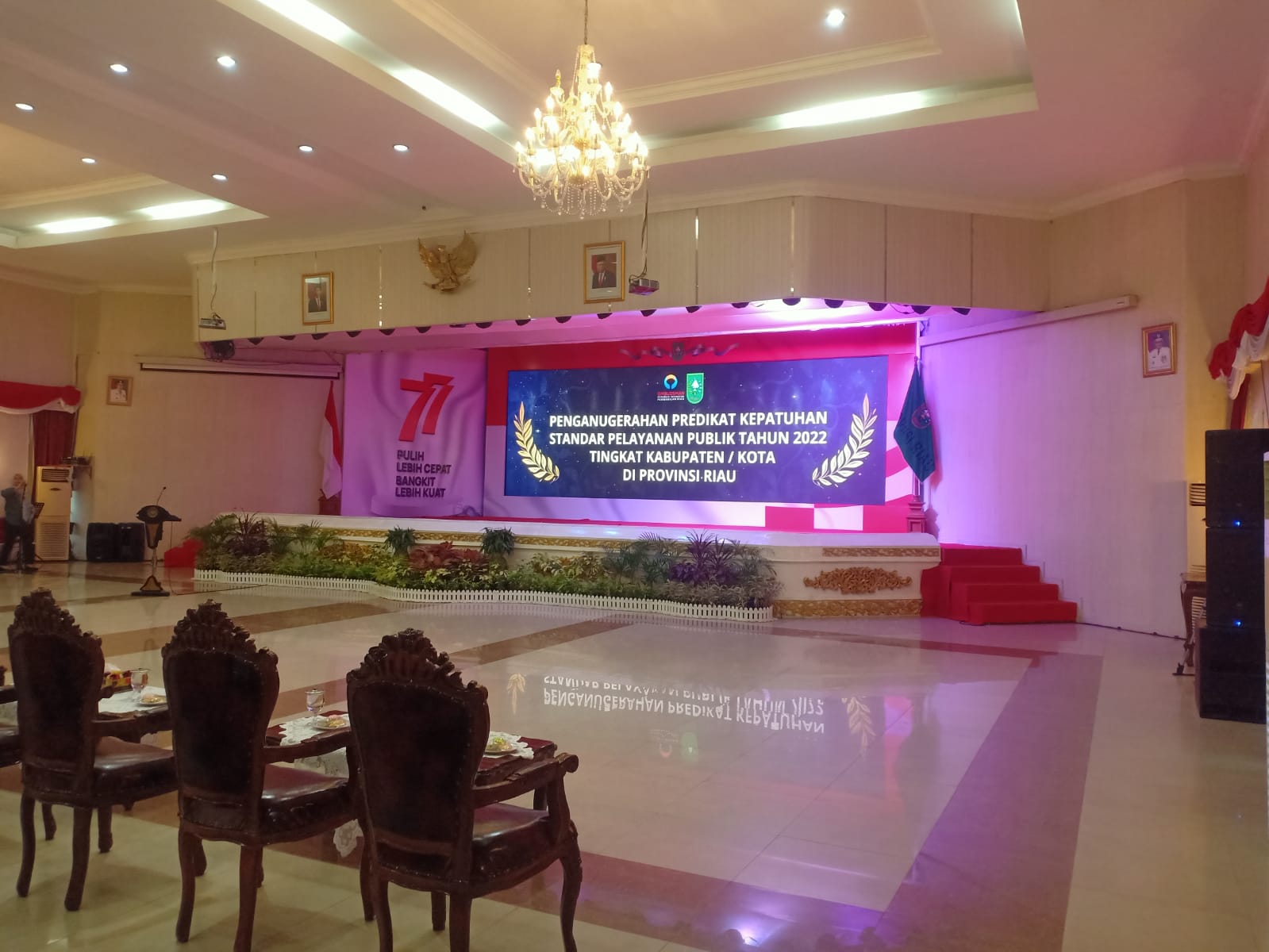Kabupaten Kampar menerima penganugerahan predikat Kepatuhan Standar Pelayanan Publik (KSPP) Tahun 2022 di Gedung Daerah Balai Serindit, Selasa, 28 Februari 2023.