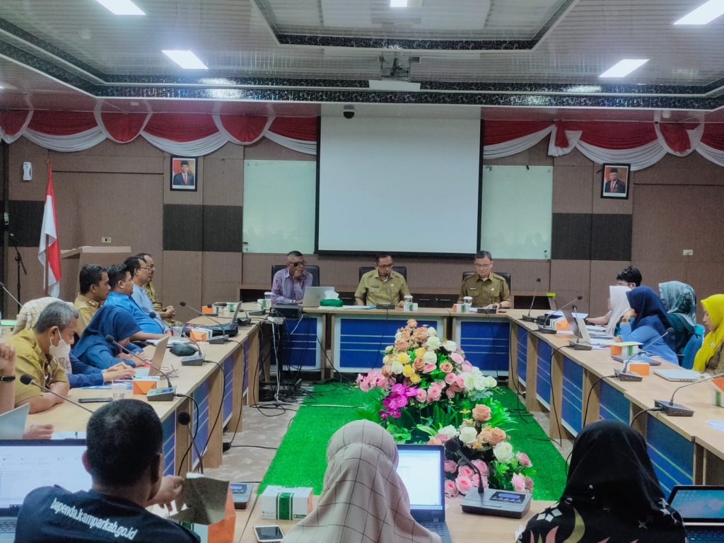 Pj. Bupati Kampar Mhd. Firdaus, MM yang diwakili Asisten Bidang Administrasi Umum (Asisten III) Ir. Azwan, M.Si membuka Acara Penyusunan Analisa Jabatan (Anjab) Analis Beban Kerja (ABK), bertempat di Ruang Rapat Kantor Bupati Lantai III.